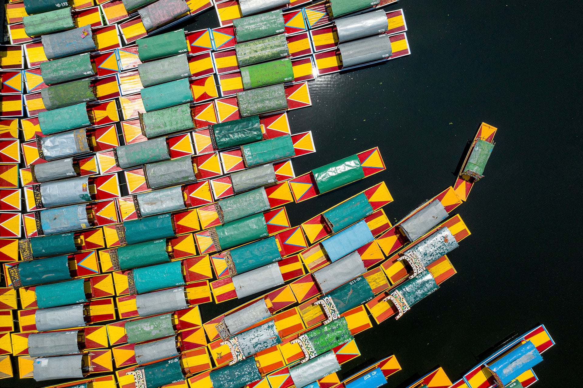 Trajineras en el Lago de Xochimilco, CDMX, 2020